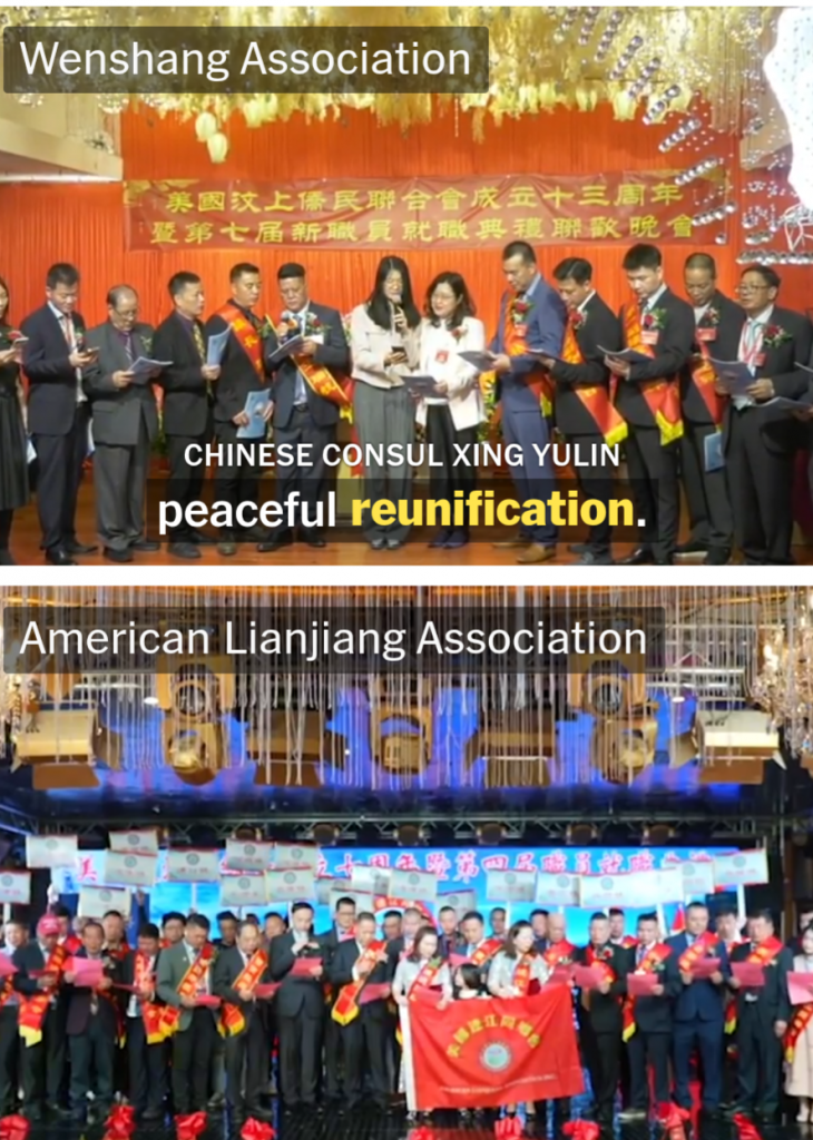 2019年,出生在台湾的州参议员刘醇逸在纽约参加了与台湾总统的会面,但他告诉时报,中国领事馆的“中间人”后来联系了他的办公室。那些中间人“明确表示,他们认为我参加那次活动是不合时宜的”。刘醇逸说,一些同乡会取消了对他的宴会邀请。