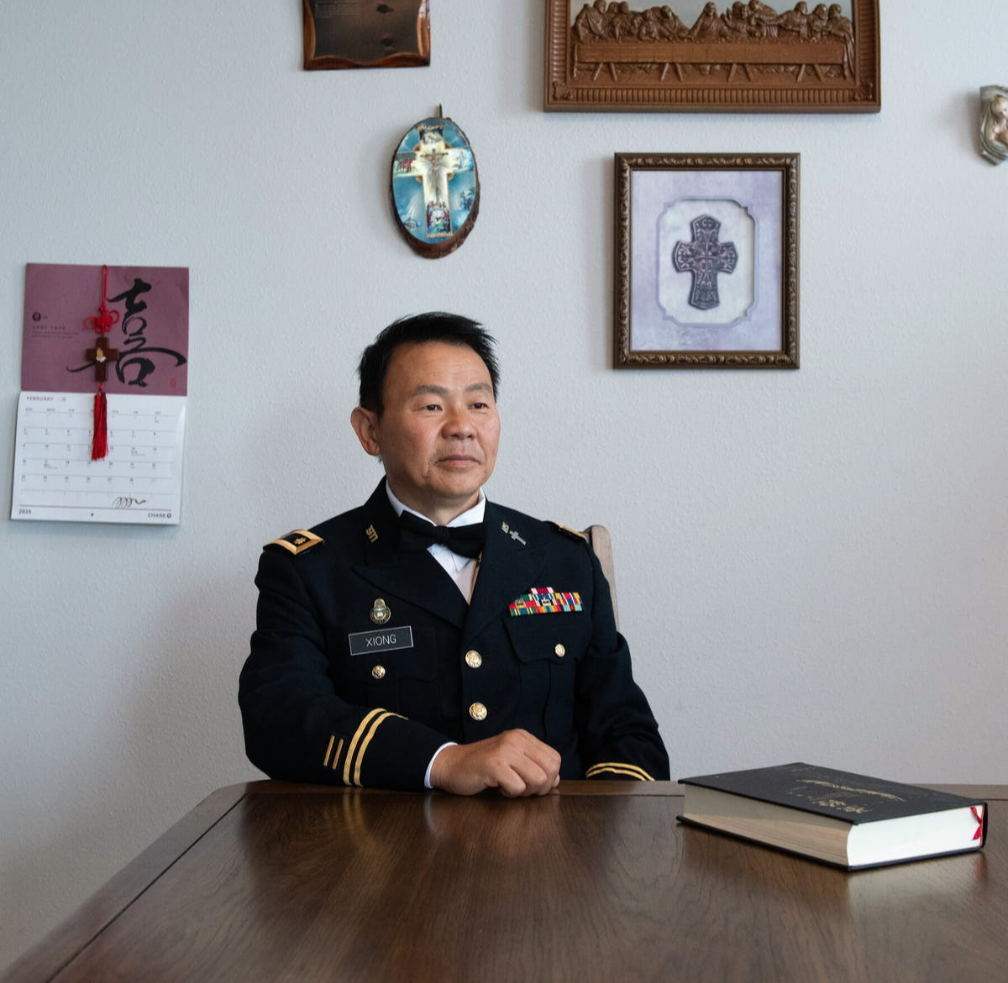 退役美国陆军牧师熊焱在学生时期曾是天安门广场抗议的领导人之一。照片摄于他位于佛罗里达州圣约翰斯的家中。Credit…Agnes Lopez for The New York Times