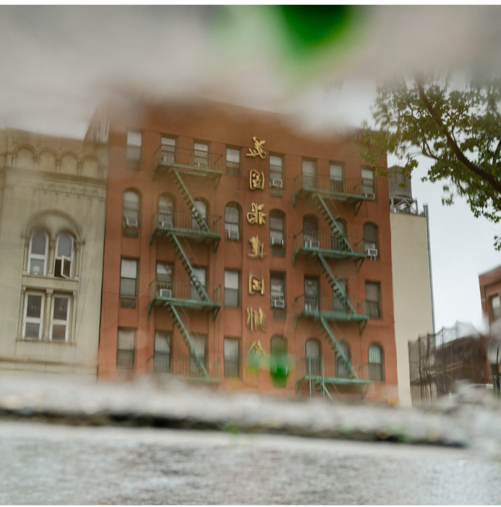 在曼哈顿华埠福建同乡会外悬挂的美国和中国国旗。Credit…Shuran Huang for The New York Times