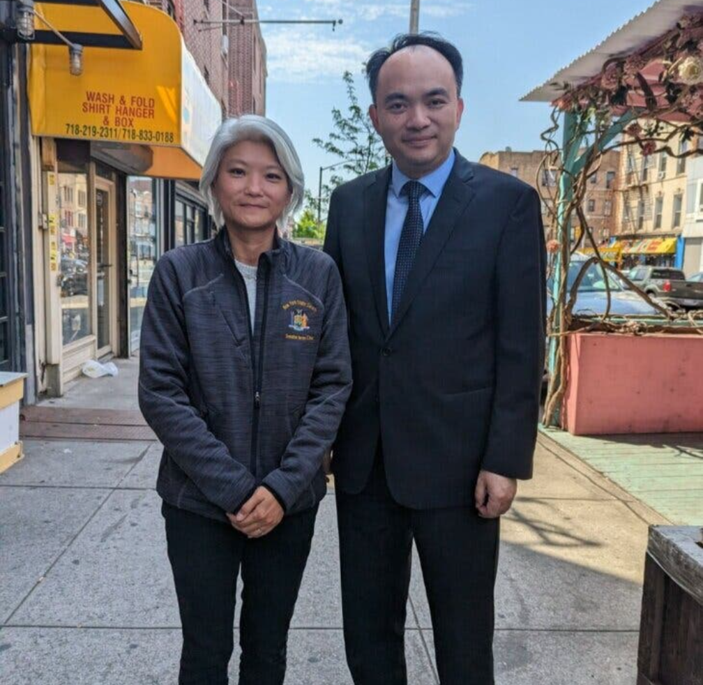 当时还是州参议员的曲怡文与副总领事李仕鹏在布鲁克林贝瑞吉。