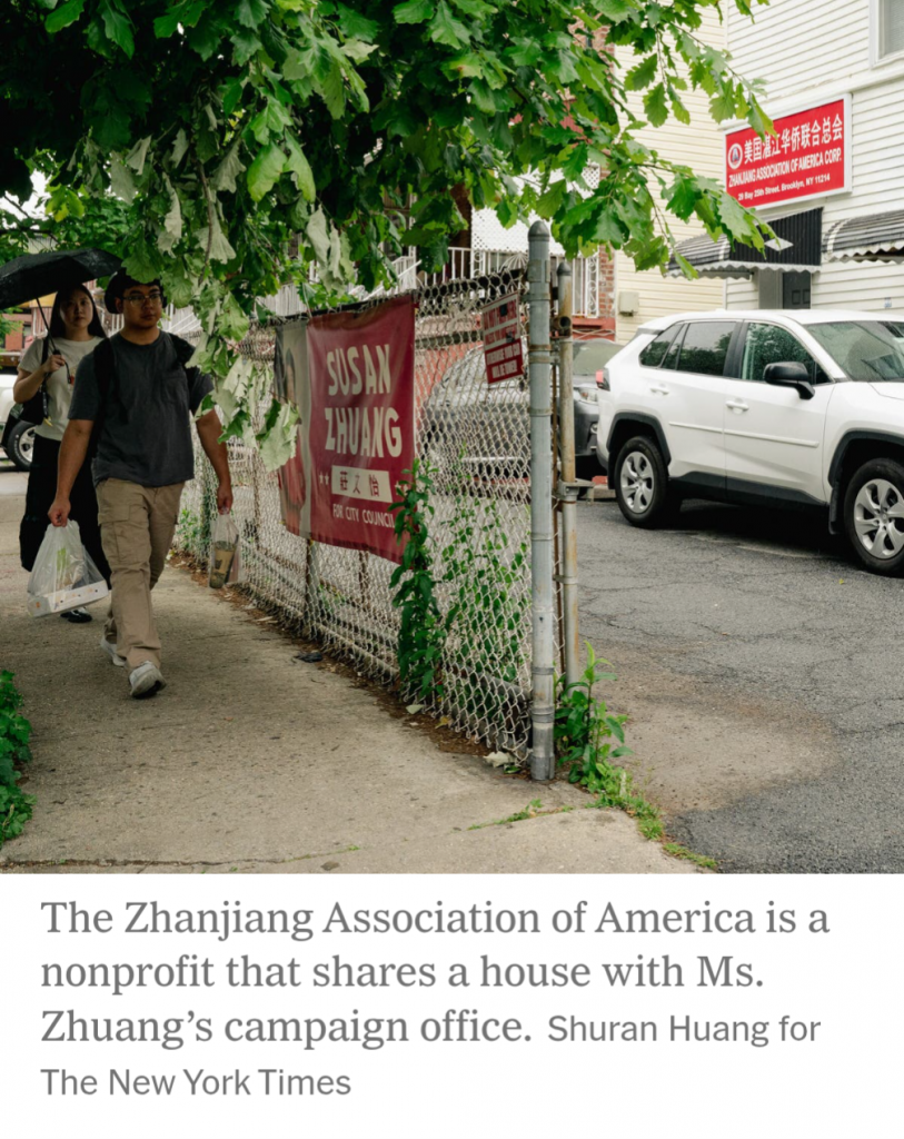 湛江同乡会是一家非营利机构,与庄文怡的竞选办公室同在一座建筑里。Credit…Shuran Huang for The New York Times