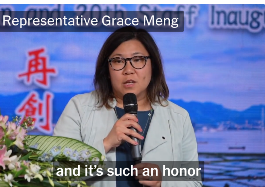 随后,在一名中国驻纽约总领馆官员和猴屿联合会主席的讲话后,纽约州众议员孟昭文发表了讲话。当地政客经常出席这些活动来接触选民。