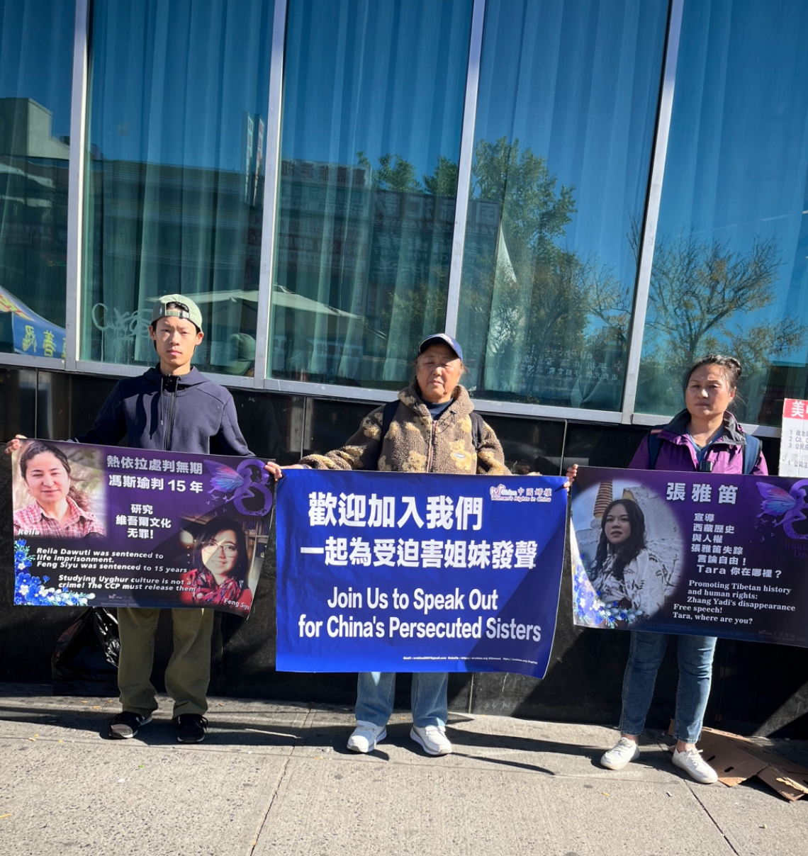 在纽约人流密集的法拉盛商业区,中国妇权组织举办集会,声援被中国当局迫害的女性——学生张雅笛与学者热依拉·达吾提和冯斯瑜。我们呼吁国际社会关注中国持续对异议人士、少数民族学者及人权倡导者的迫害。