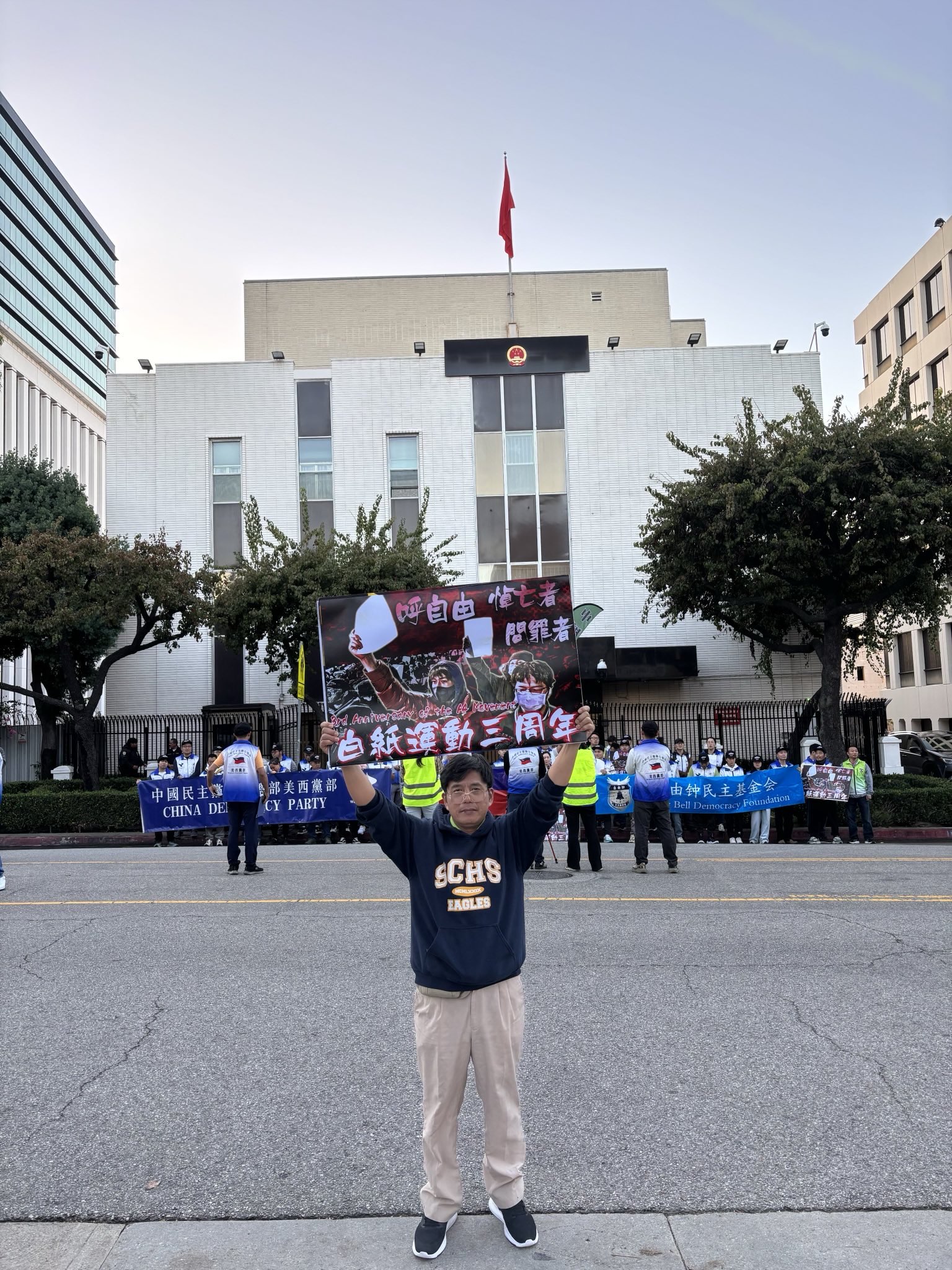 2025年11月23日下午3時,中国妇权(Women’s Rights in China ,WRIC)加州分部的义工们来到中共驻洛杉矶领事馆门前,举行了 “纪念白纸运动三周年”活动,悼念 2022 年乌鲁木齐吉祥苑小区火灾遇难者,以及声援那些为自由而呐喊却遭到中国政府全面镇压的行动者。义工们回顾了三年前全国范围内掀起的白纸行动,分享了这场运动的重大意义和历史意义。