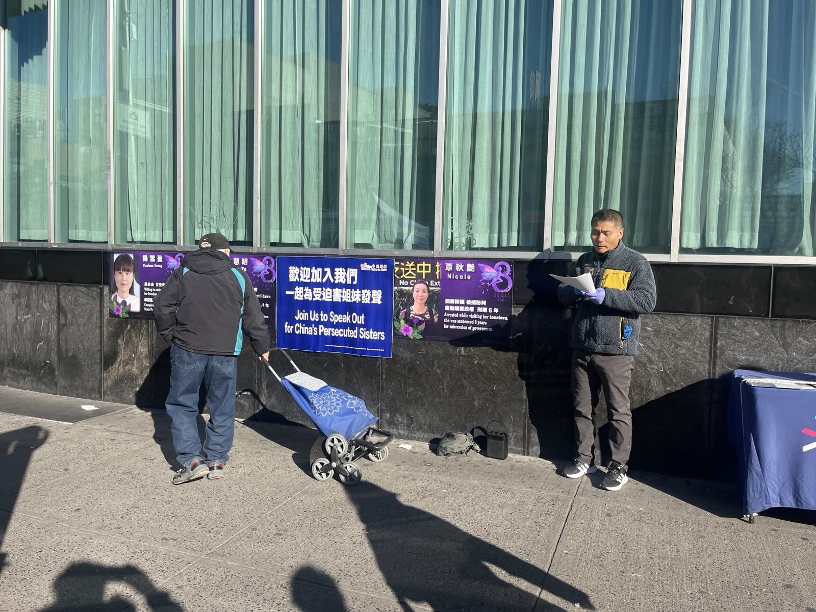 中国妇权(WRIC)11月29日在国际妇女人权捍卫者日(International Women Human Rights Defenders Day, WHRD)之际,再次来到纽约法拉盛公共图书馆旁,声援中国为民主自由及人权而付出自己自由和青春的女性勇士们,同时纪念白纸运动三周年,向在高压封控时期勇敢高举白纸、走向街头的年轻朋友们致敬,表达对所有和平抗暴者的支持和敬意。