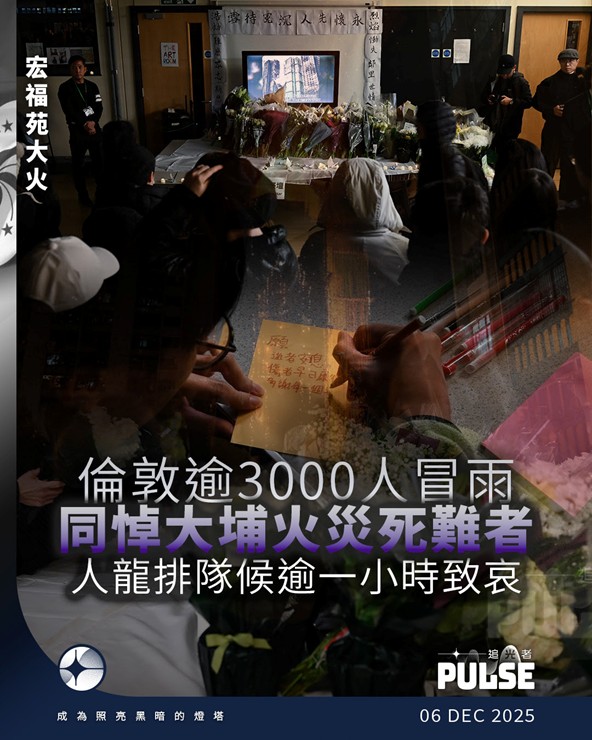 香港全城處於哀傷之中,相隔千里,那份傷痛同樣縈繞在海外港人心中。星期五(5日)晚上有港人組織在倫敦就大埔火災舉行悼念會,兩個多小時的活動有逾3,000人到場向死難者致哀。
