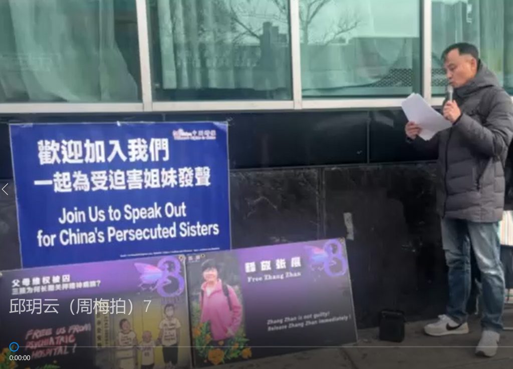 今天,我们为她站在这里,就是要告诉世界: 张展不是罪犯。她是中国最勇敢的见证者之一。 说真话无罪,追问真相无罪,良心无罪。 我们也要告诉迫害者: 你们可以囚禁她的身体,但囚不住她的信念; 你们可以审判她,却无法审判自由; 你们可以让她沉默一时,却不能让世界遗忘她。 中国妇权郑重呼吁中国政府: 释放张展!停止迫害公民记者! 还新闻自由以尊严!让说真话不再成为罪!