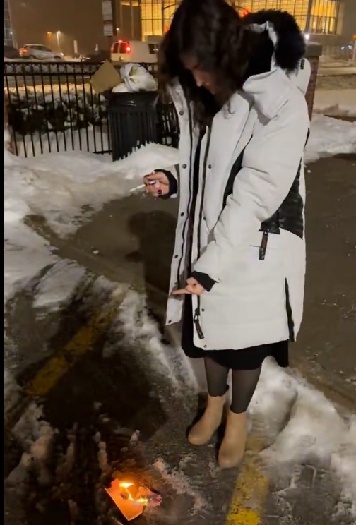 10日,欧洲新闻台等外媒报道,最近社交媒体上流传着一段视频,视频中一名身穿羽绒服的女性摘下头巾,露出脸来,在街上点燃了伊朗最高领导人阿亚图拉·阿里·哈梅内伊的照片。视频中,该女性用纸点燃嘴边的香烟后,对着掉在地上的哈梅内伊照片竖起了中指。这段视频传递了对抗国家权威和宗教原教旨主义的信息,因此特别引人注目。
