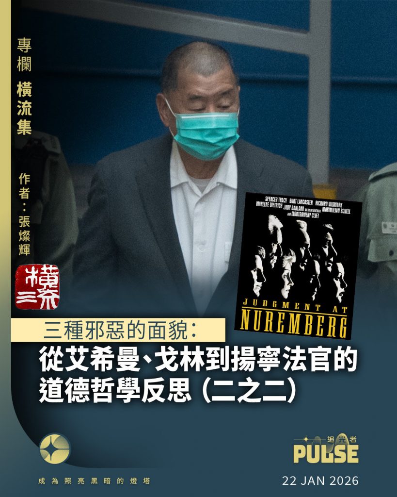 香港的案例為我們關於邪惡的討論增添了第四種面貌。如果說艾希曼代表了無思的邪惡,戈林代表了權力的邪惡,揚寧代表了專業主義的邪惡,那麼香港的法官們則代表了一種更為複雜的混合形態:在全球化時代、在資訊自由流通的環境下,明知故犯的體制性邪惡。