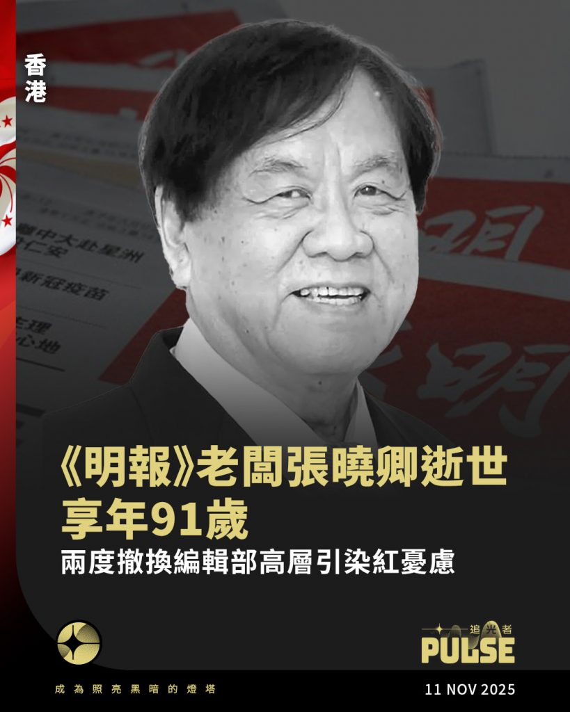 港區《國安法》下多次被保安局局長鄧炳強點名批評甚至強烈譴責的香港報章《明報》,其母公司世界華文媒體(簡稱世華媒體)榮譽主席張曉卿周二(11日)逝世,享年91歲。1995年入主《明報》到今日,張曉卿及其家族掌控《明報》30年,期間至少發生兩次編輯室高層人事大地震,引發染紅《明報》、限制新聞自由的憂慮。
