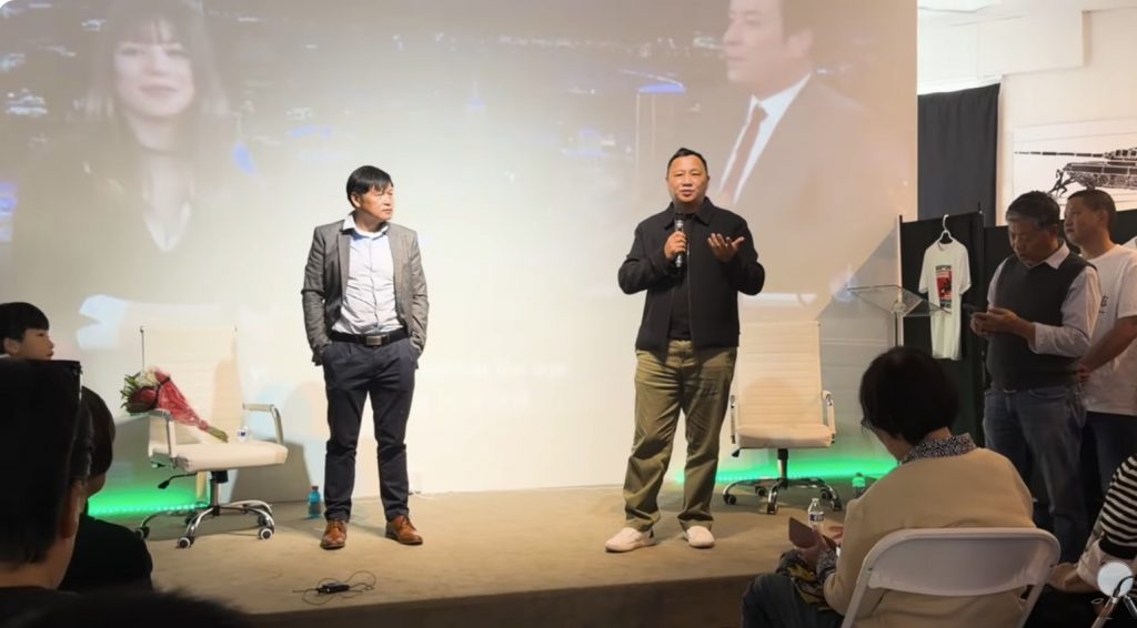 劉俊2026年3月7日在洛杉磯六四機娘的演講活動,有六四老同道王丹館長主持。( 圖片:WRIC)